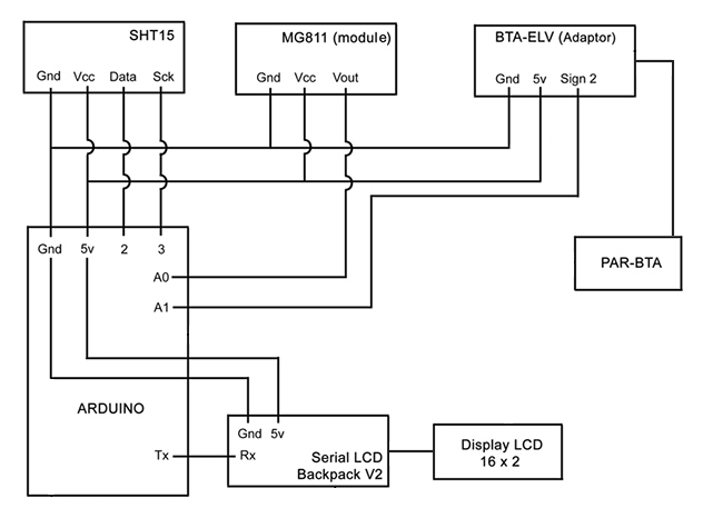 MEDITATIVE SYMBIOSIS ELECTRONIC STRUCTURE Devices . The data from the sensors will be processed with an Arduino microcontroller. . The sensors description is the following: a) Carbon dioxide: MG- 811 Sandbox Electronics. datasheet: http://netdrive.envell.com/pic/ebay/SEN-000007/SEN-000007_Datasheet.pdf b) For temperature and humidity regulation:SHT15 Sensirion. datasheet: https://www.sparkfun.com/datasheets/Sensors/SHT1x_datasheet.pdf c) For the light measuring: PAR Meter (Quantum Light Sensor) MQ100 Apogee with a amplifier module PAR-BTA Vernier. Technical info: http://www.vernier.com/products/sensors/solar-radiation-sensors/par-bta/ For connect this sensor to Arduino I will use an adapter: http://www.vernier.com/products/accessories/proto-board-adapters/bta-elv/ f) For data external visualisation: Lcd Display GDM1602K / http://www.olimex.cl/product_info.php?products_id=185&product__name=Display_Alfanumeric o_16x2_blanco_negro / This display wil be connected to Arduino by a Serial Backpack V2 / http://www.olimex.cl/product_info.php?products_id=975&product__name=Serial_LCD_Backpac k_V2